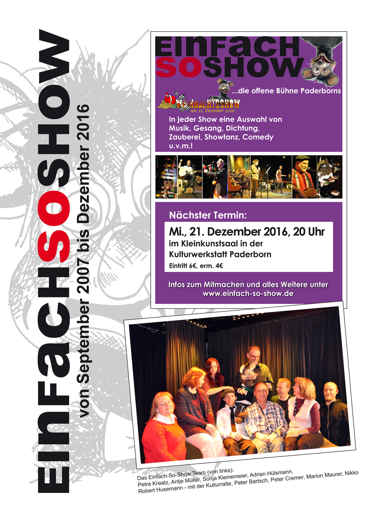 Freitag, 14.09.2018 Café Röhren Kultur im Café Mühlenstr. 10 330 98 Paderborn www.cafe-roehren.com |